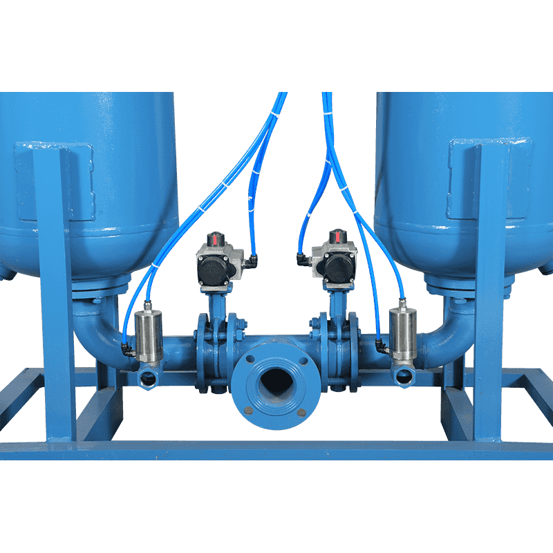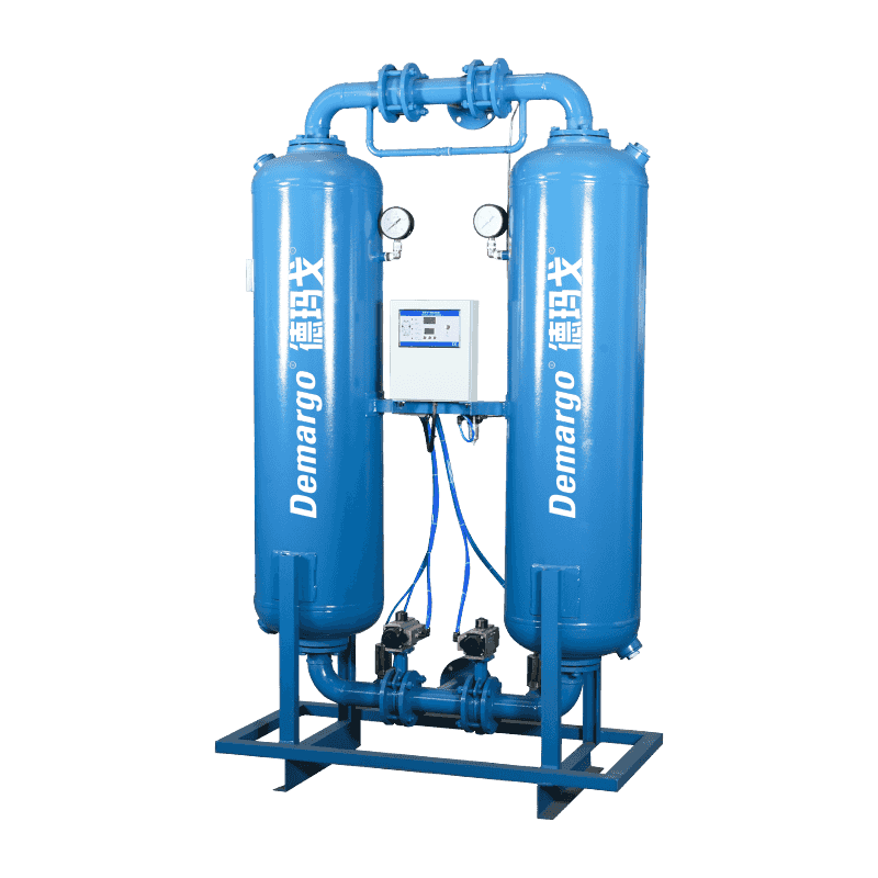 Ang heatless regenerative adsorption dryer ay gumagamit ng "pressure swing adsorption" upang makamit ang epekto ng pagpapatayo. Dahil ang kakayahan ng hangin na humawak ng singaw ng tubig ay inversely proporsyonal sa presyon, ang isang bahagi ng hangin pagkatapos ng pagpapatayo (tinatawag na pagbabagong -buhay gas) ay decompressed at pinalawak sa presyon ng atmospera. Ang pagbabago ng presyur na ito ay ginagawang mas malalim ang air drier, at pagkatapos ay pinapayagan na dumaloy sa pamamagitan ng desiccant layer na hindi konektado sa daloy ng hangin (i.e. ang pagpapatayo ng tower na sumisipsip ng sapat na singaw ng tubig). Ang dry regeneration gas ay sumisipsip ng kahalumigmigan sa desiccant at kinuha ito sa labas ng dryer upang makamit ang layunin ng dehumidification.