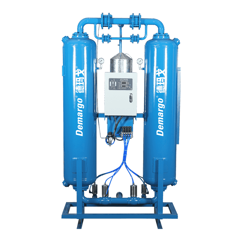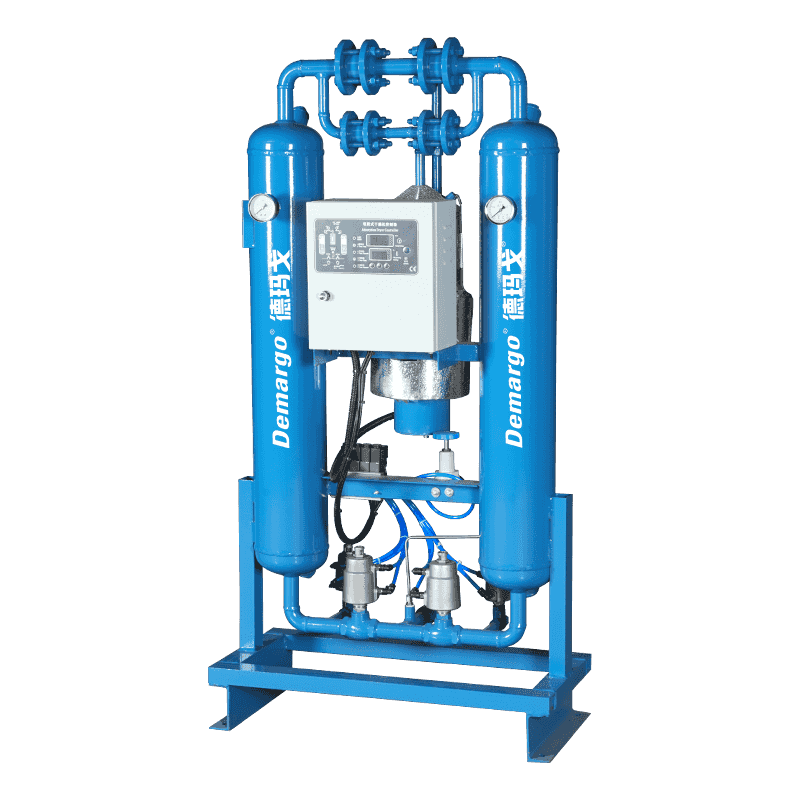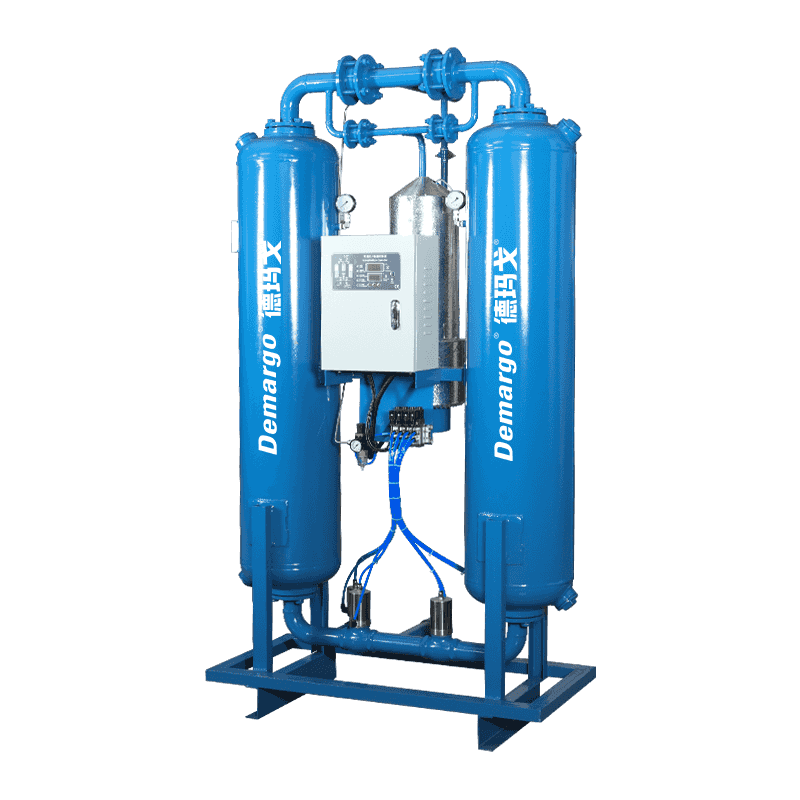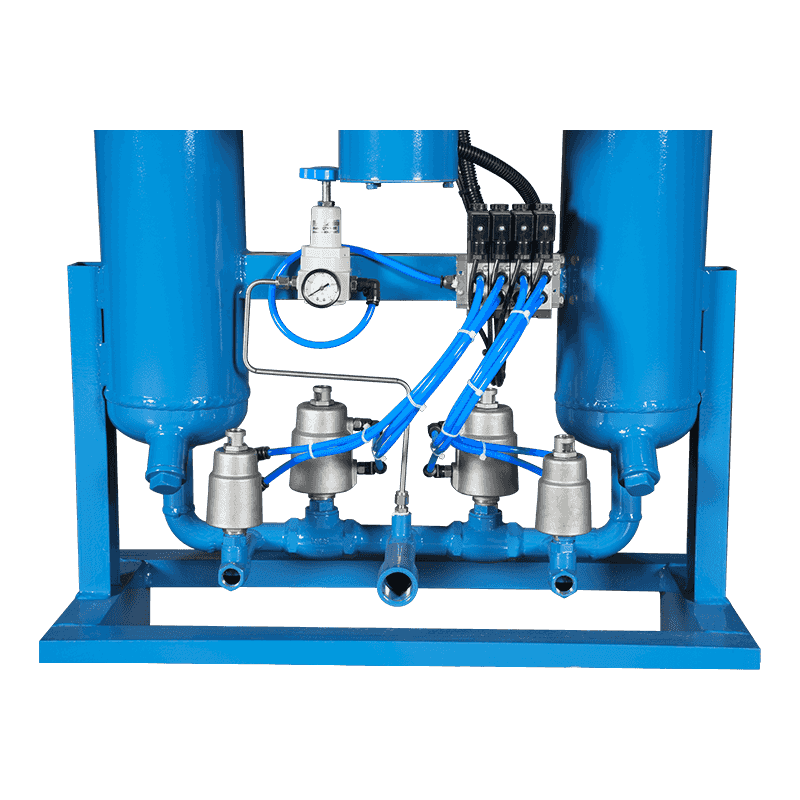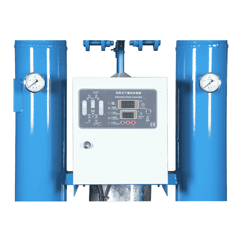 Ang serye ng mga adsorption dryers ay pinagsasama ang mga pakinabang ng presyon ng swing adsorption at temperatura swing adsorption. Adsorption (nagtatrabaho) sa temperatura ng silid at mataas na singaw ng tubig na bahagyang presyon: desorption (pagbabagong -buhay) sa mas mataas na temperatura at mababang singaw ng tubig na bahagyang presyon. Ang kahalumigmigan na na-adsorbed ng adsorbent sa panahon ng proseso ng adsorption ay tinanggal sa pamamagitan ng pinagsamang pagkilos ng dalawang mekanismo ng thermal diffusion at ang mataas na presyon ng pagkakaiba-iba ng pagbabagong-buhay gas (dry air heating) sa panahon ng proseso ng pagbabagong-buhay.