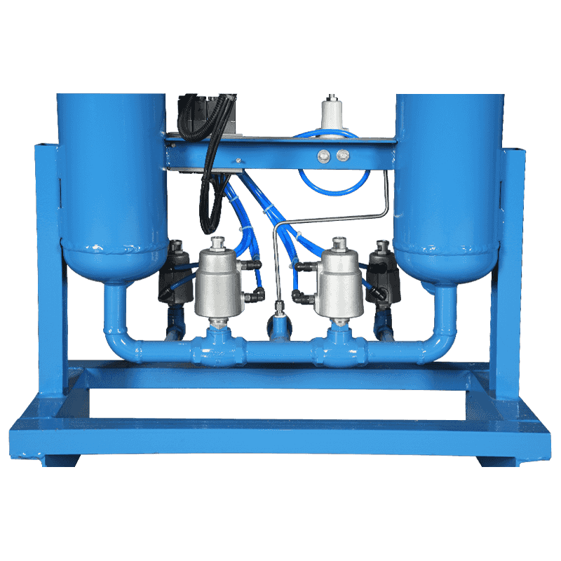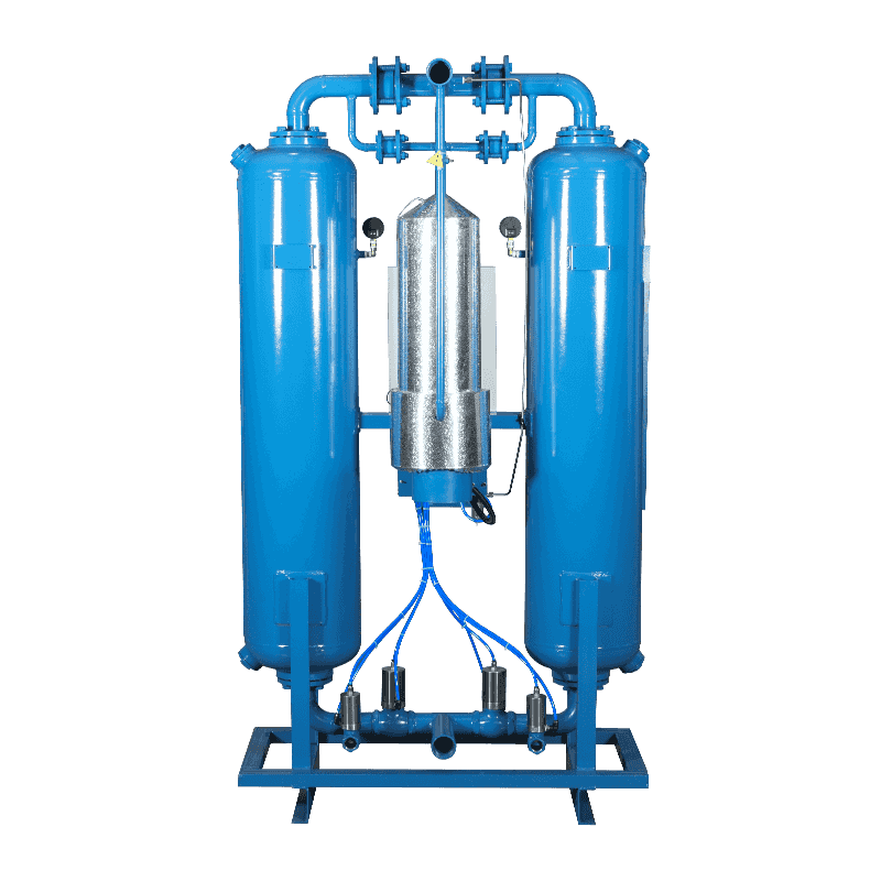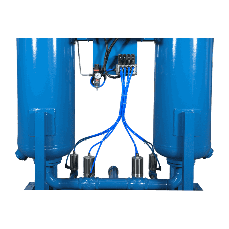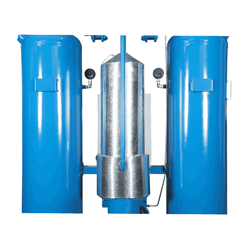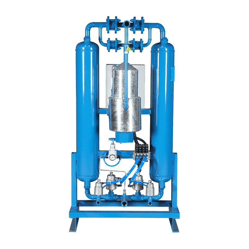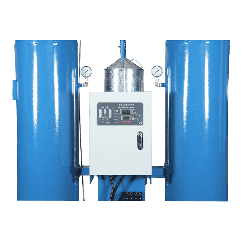 Ang serye ng mga adsorption dryers ay pinagsasama ang mga pakinabang ng presyon ng swing adsorption at temperatura swing adsorption. Adsorption (nagtatrabaho) sa temperatura ng silid at mataas na singaw ng tubig na bahagyang presyon: desorption (pagbabagong -buhay) sa mas mataas na temperatura at mababang singaw ng tubig na bahagyang presyon. Ang kahalumigmigan na na-adsorbed ng adsorbent sa panahon ng proseso ng adsorption ay tinanggal sa pamamagitan ng pinagsamang pagkilos ng dalawang mekanismo ng thermal diffusion at ang mataas na presyon ng pagkakaiba-iba ng pagbabagong-buhay gas (dry air heating) sa panahon ng proseso ng pagbabagong-buhay.