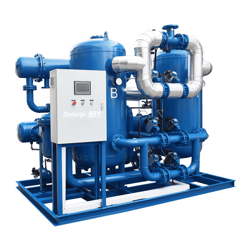 Ang basurang heat dryer ay gumagamit ng basurang init ng air-free air compressor upang magpainit at magbagong muli ng adsorbent; Ginagawa nitong buong paggamit ng basurang init sa naka -compress na sistema ng hangin. Nang hindi gumagamit ng isang aparato ng pag-init, ang epekto ng pag-init ng pag-init ay maaari ring makamit, na ganap na nagpapakita ng mga katangian ng pag-save ng enerhiya at mataas na kahusayan. Ang dew point ng tapos na gas ay maaaring umabot -40 ℃. Ang self-develop na PLC controller ay ginagamit, na kung saan ay mas matatag at maaasahan kaysa sa single-chip microcomputer. Ang control valve ay gumagamit ng isang de-kalidad na balbula ng butterfly upang matiyak na walang problema sa paglipat ng higit sa 1 milyong beses. Pinapayagan ng advanced na disenyo ng maninisid